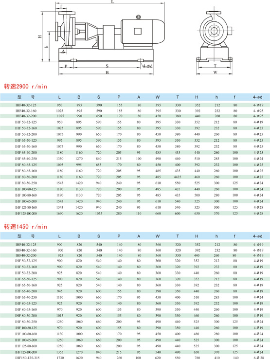 | IHF50-32-125 | 2900 | 8.8 | 1.08 | 21.5 | 45 | 1.15 | 2.2 | 3.0 |