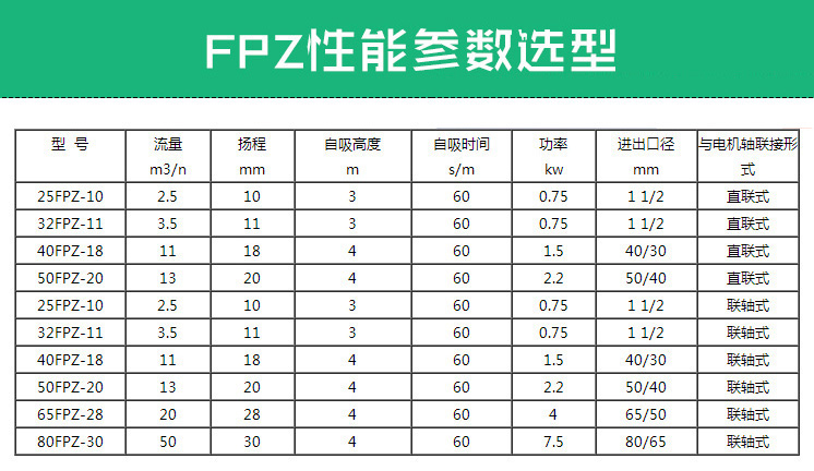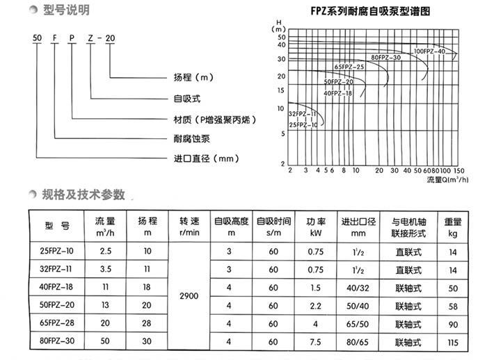 FPZ系列泵一次注塑成型、機械強度高,耐腐蝕性能強,結構上有獨具一格的科學性。泵腔內設有吸液室、儲液室、回液止回閥、氣液分離室、回流孔,只需在第一次開機前灌注引液,以后不必重復灌注引液,在吸送介質時,液體可時斷時續,斷液15分鐘內來液可繼續吸送,機械密封不需另加冷卻水冷卻,操作簡便,安全,無泄漏,是取代液下泵的最佳產品。