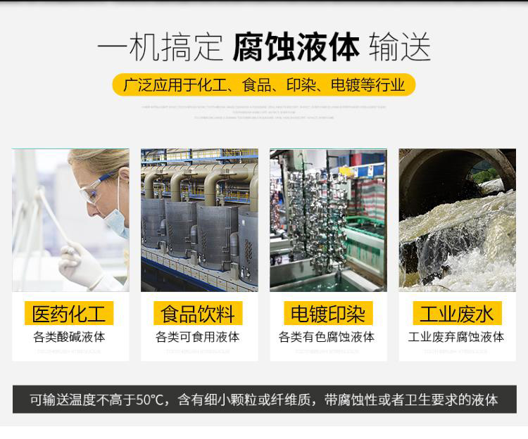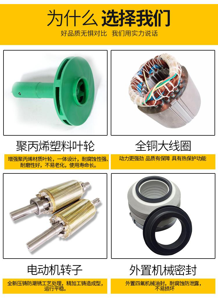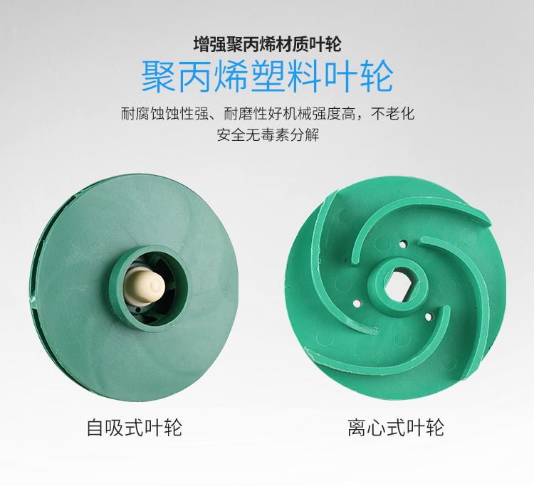 泵材質,采用無毒、無污染,增強聚丙烯RPP(適用溫度-14℃~100℃)、ABS、UPVC第一次性注塑成型。