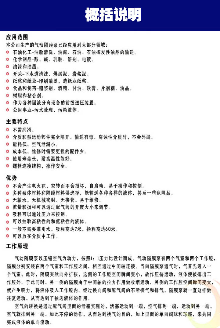 產(chǎn)品操作,安全可靠,耐腐蝕性,經(jīng)久耐用,具自吸性,空轉(zhuǎn)無損,不需要加油,多種材料,用途廣泛,裝置簡單,免卻維修。