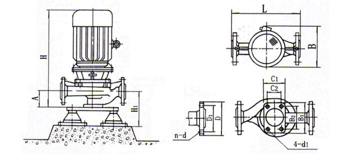 1、泵為立式結(jié)構(gòu),進(jìn)出口口徑相同,且位于同一中心線上,可象閥門(mén)一樣安裝于管路之中,外形緊湊美觀,占地面積小,建筑投入低,如加上防護(hù)罩則可置于戶(hù)外使用。