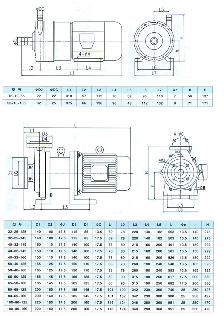 | 注:表中CQB32-25-125F----CQB100-80-160F都可配防爆電機 | |||||||